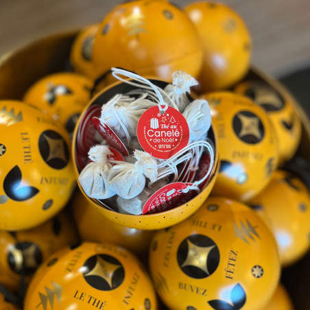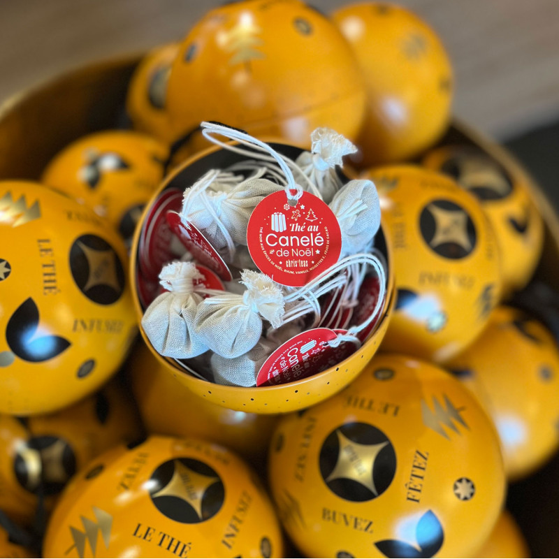 À accrocher au sapin ou à glisser dans une valise pour un départ en vacances, cette boule de Noël élégamment décorée renferme une surprise gourmande et réconfortante : 20 sachets de thé noir inspiré du célèbre canelé de Bordeaux. Une idée cadeau originale et raffinée, parfaite pour faire (ou se faire) plaisir pendant les fêtes !