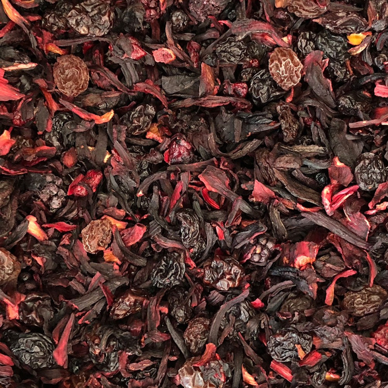 Une infusion audacieuse aux notes acidulées d'hibiscus, de fruits rouges et de baies soutenue par des notes gourmandes de cassis et de mûres. C'est l'hibiscus, ingrédient phare de cet assemblage qui donne cette superbe liqueur rouge au mélange.