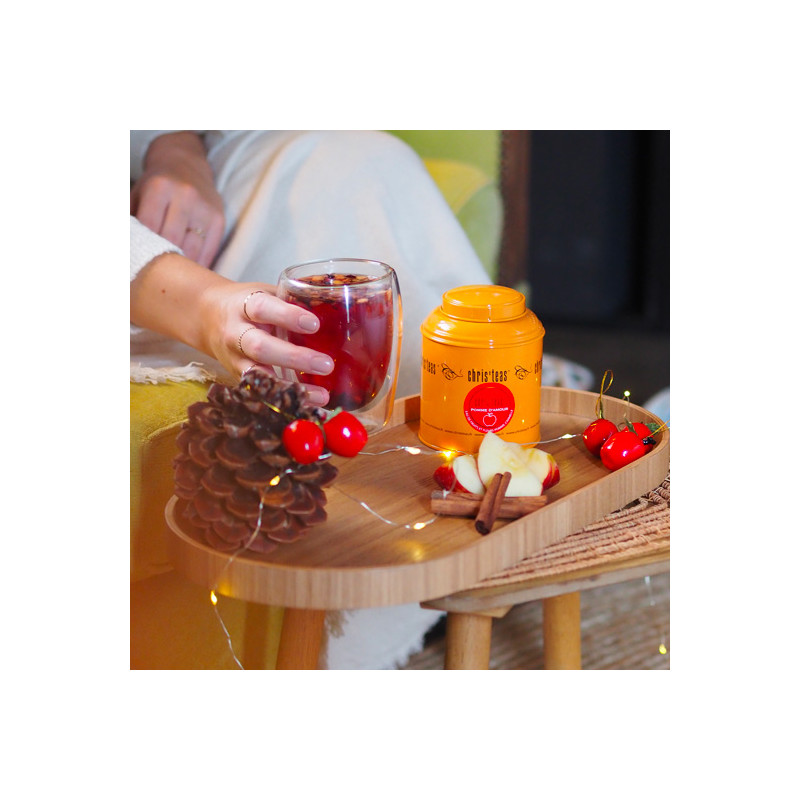 Croquez dans le fruit défendu… Infusion gourmande aux fruits et aux plantes, Pomme d’Amour est un mélange généreux de pommes caramélisées et de cannelle qui évoque les saveurs de l'enfance et surtout celles de Noël et des soirées fraîches d’hiver.