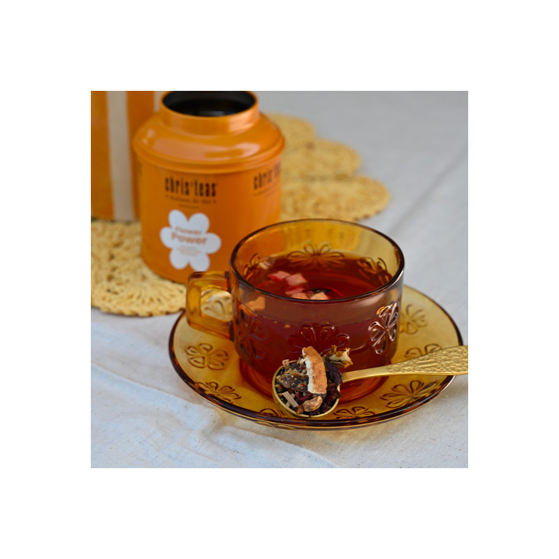 Flower Power, une eau de fruits et de fleurs épicée, fruitée et fleurie à la fois ! Concoctée avec du gingembre, mandarine et fleurs de grenade.