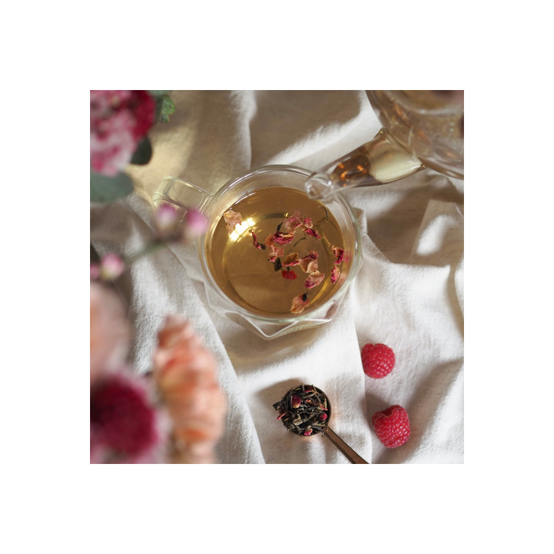 "Je m'en irai dormir dans le Paradis Blanc, où les nuits sont si longues qu'on en oublie le temps…" Le temps d'un délicieux thé blanc à la framboise avec des morceaux d'airelles et de sureau. Ce thé est sans doute le plus délicat d'entre tous !