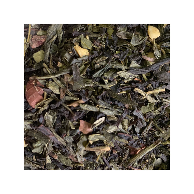 L'apport en thé noir vient donner une note boisée, rendant le mélange gourmand. La note végétale et légère apparaît en bouche grâce à la subtilité du thé vert.