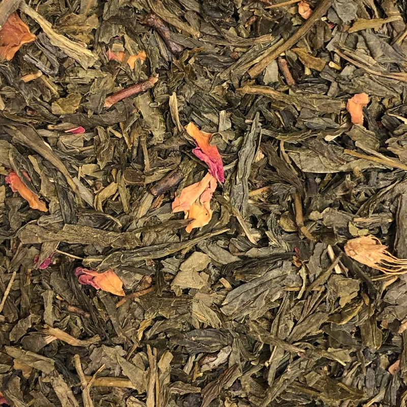 Thé vert, fraise, cerise, framboise, vanille, citron et rose