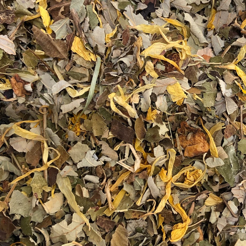 Gingembre confit, verveine, menthe, mauve, rose, baies d’aronia & de goji